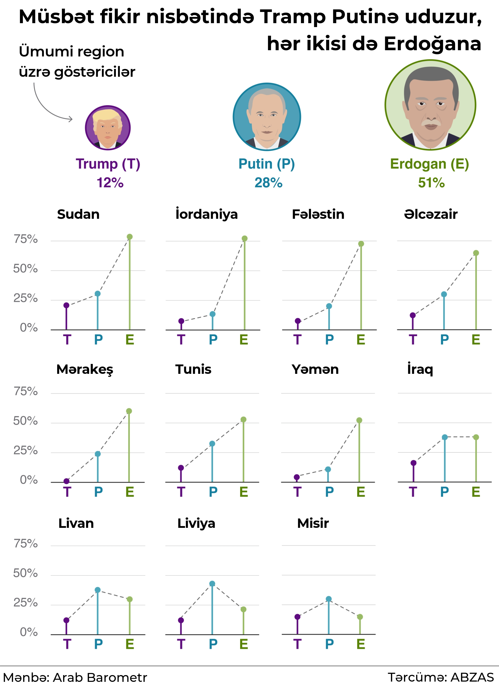 Livan, Liviya və Misirdə isə Vladimir Putinin siyasəti Ərdoğanınkından daha öndə olduğu qeyd edilib.