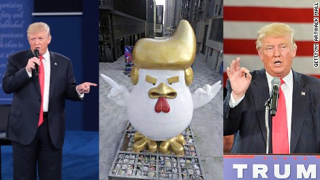 Heykəlin dizayneri ABŞ-ın gələcək prezidenti Donald Trump-ın gözə çarpan saç düzümü və əl hərəkətləri tərəfindən təsir olduğunu deyib.