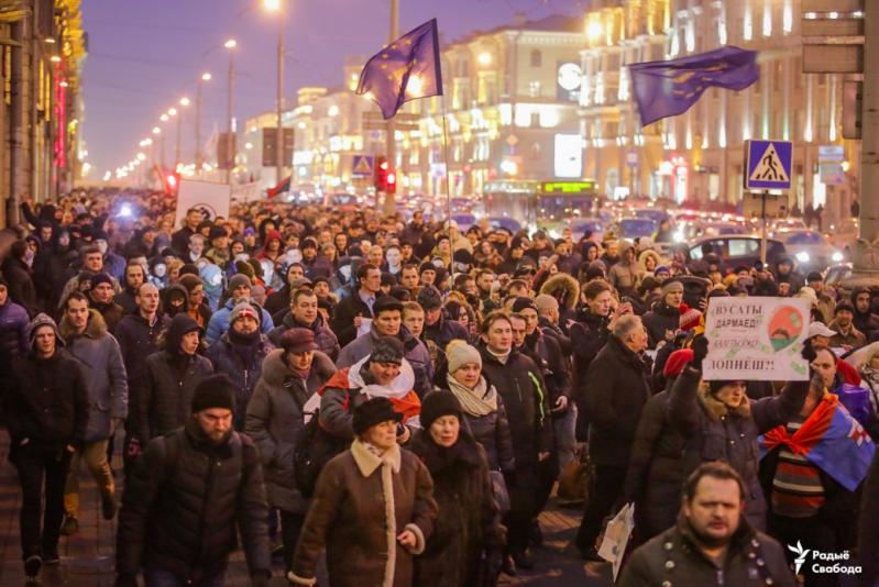 Fevralın 17-də, Minskdə "parazitizm" vergisi əleyhinə etiraz olaraq minlərlə insan küçələrə çıxıb.