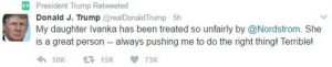 Ayın əvvəlində Nordstrom az satış səbəbindən İvanka Trump-ın geyim kolleksiyasını satmaqdan boyun qaçıran beşinci şirkət olub.