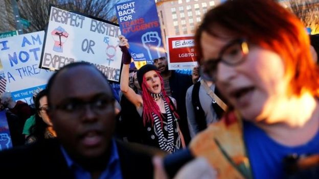 Bu qaydalar eks-prezident Barack Obamanın vaxtında qəbul olunub. Obama tərəfindən tətbiq edilən qaydalar dövlət məktəblərində məktəbli-transgenderlərə özlərini qəbul etdikləri cinsiyyətə görə ayaqyolundan istifadə etməsinə icazə verir.