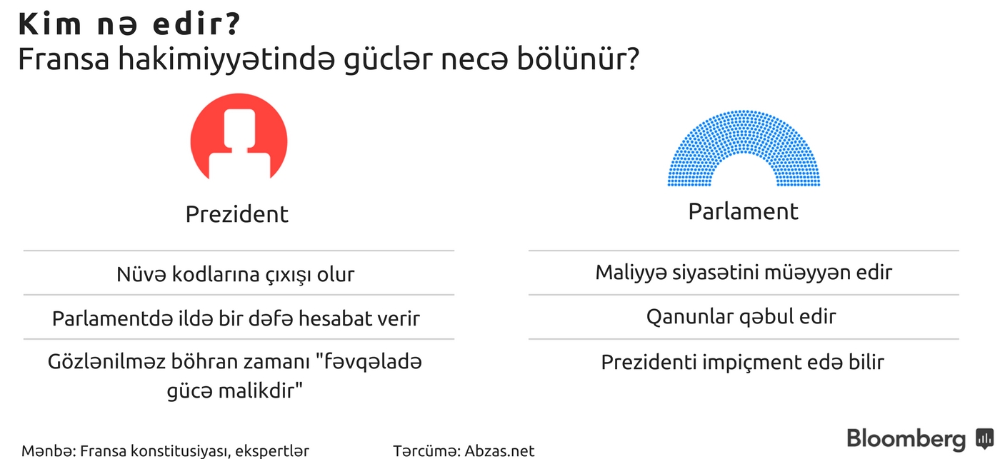 Bloomberg agentliyi Fransadakı seçkilərlə bağlı yazı dərc edib. Seçkilər necə keçirilir, prezident və parlament hansı səlahiyyətlərə malikdir, ifrat sağçılar və digər maraqlı məlumatları təqdim edib.