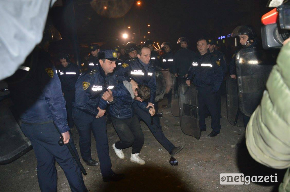 Nəticədə polislə kütlə arasında dava başlayıb, polis müqavimət göstərdiyinə görə altı nəfəri saxlayıb.