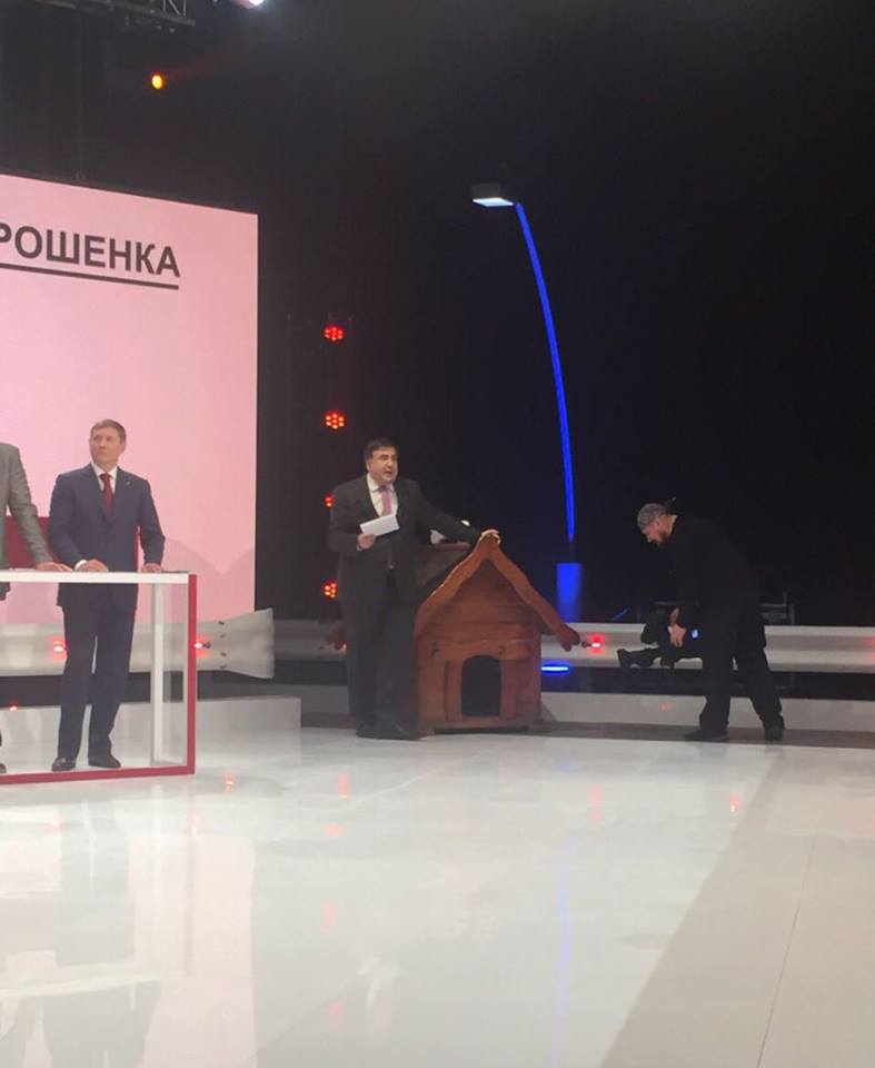 Bu barədə Sakashvili sosial şəbəkədə yazıb. O, həmçinin studiyanın fotolarını yayıb. Onun ilk qonağı Ukrayna parlamentinin deputatı Volodymyr Parasyuk olub.