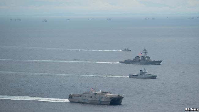 ABŞ həmçinin Pekinin Cənubi Çin dənizində süni adalar yaratmasına etirazını bildirərək, regionda gücünü nümayiş etdirmək məqsədilə beynəlxalq sulardakı adaların yaxınlığına hərbi gəmilər göndərib.
