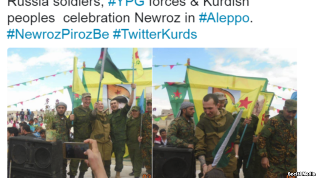 YPG-lilərin paylaşdıqları düşünülən bu fotolarda onların Rusiya əsgərləri ilə birlikdə Novruz bayramını qeyd etdikləri əks olunur. Bu fotoların çəkilmə tarixi martın 21-i göstərilir.