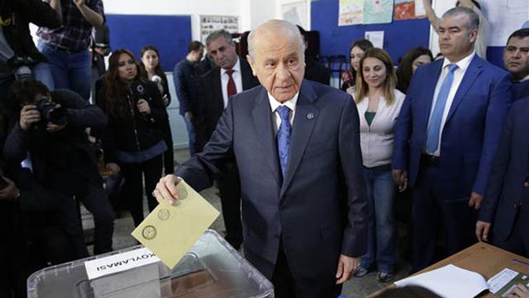 Millətçi Hərəkat Partiyasının sədri Devlet Bahçeli də səsini Ankarada verib. Səsvermədən sonra jurnalistlərə qısa açıqlama verən Bahçeli Türkiyənin önəmli mərhələdən keçdiyini və üzərinə düşən vəzifəni yerinə yetirdiyi üçün xoşbəxt olduğunu bildirib.