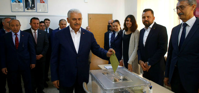 Baş nazir Binalı Yıldırım isə İzmirdə səs verib. Jurnalistlərə qısa açıqlama verən Yıldırım qutudan çıxacaq nəticəyə hörmətlə yanaşılacağını deyib. "Nəticədən asılı olmayaraq millətin qırarı başımızın tacıdır. Millətimizin verdiyi qərar ən gözəl qərardır"- deyə baş nazir bildiri.