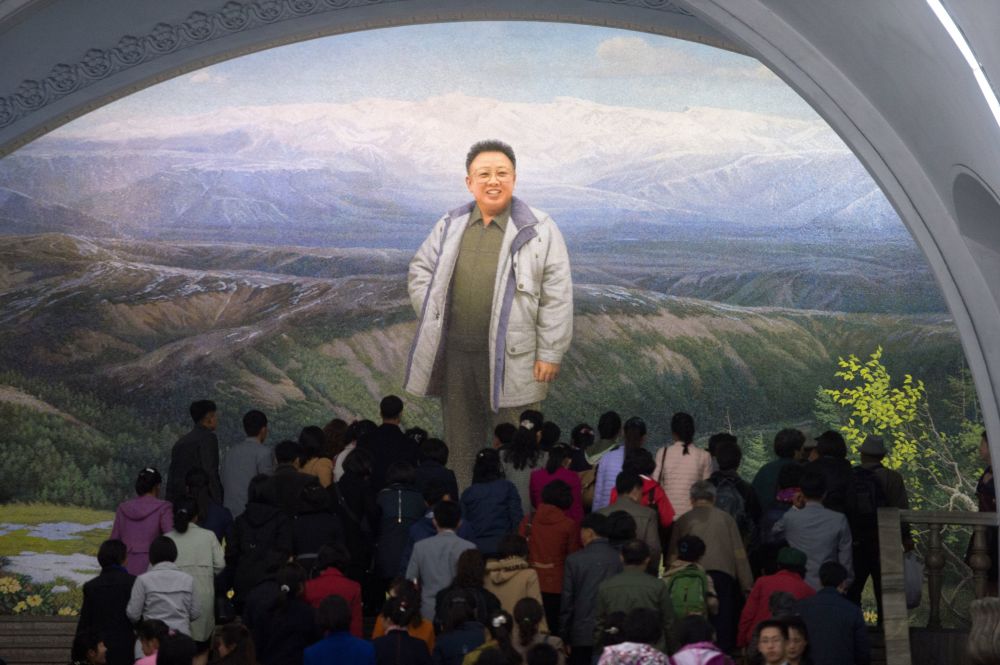 Pxenyan metrosunda Şimali Koreyanın keçmiş lideri Kim Yong İlin portreti[/caption]