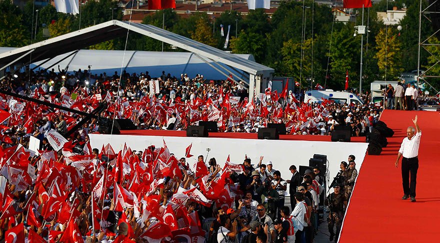 Abzas.net xəbər verir ki, mitinqdə çıxış edən Kılıçdaoroğlu 9 iyulun yeni bir tarix, yeni bir başlanğıc olduğunu deyib. CHP lideri dünyada ən sülhsevər yürüşünü həyata keçirdiklərini və mütləq ölkəyə demokratiya gətirəcəklərini bildirib: