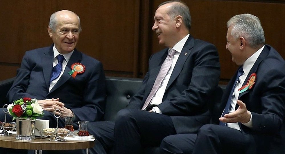 Əvvəllər bir-birlərinə qarşılıqlı olaraq təhqirlər yağdıran AKP sədri Ərdoğan və MHP sədrli Bahçeli sonradan müttəfiq olublar. Ancaq onların yaratdığı "Cumhur" ittifaqı Ərdoğana xeyirdən çox zərər gətirdiyi deyilir.[/caption]